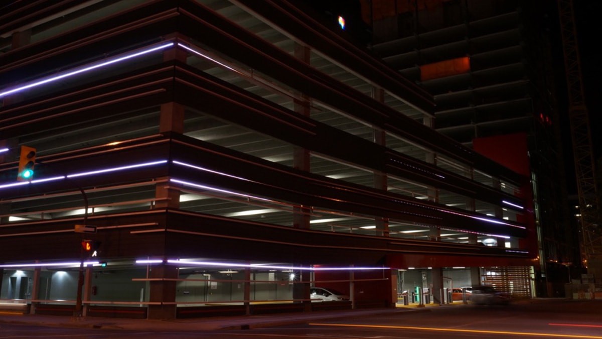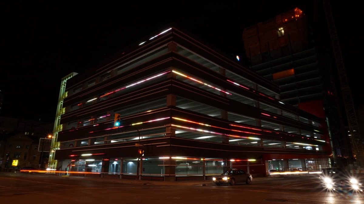 SACO is proud to present its latest LED innovation in Winnipeg, Canada. The Centrepoint Hargrave Parkade exterior decorative face was designed and built for Nova-Con Projects Ltd.