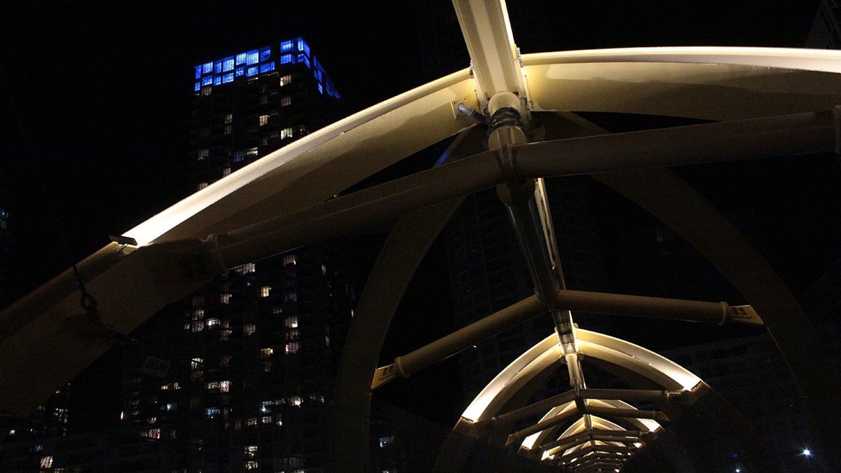 As well as lighting up the tower top, SACO also were invited to illuminate The Puente de Luz footbridge below. For this bridge the slightly smaller DELTA-1 fixtures were used in warm white to compliment the colour of the bridge.