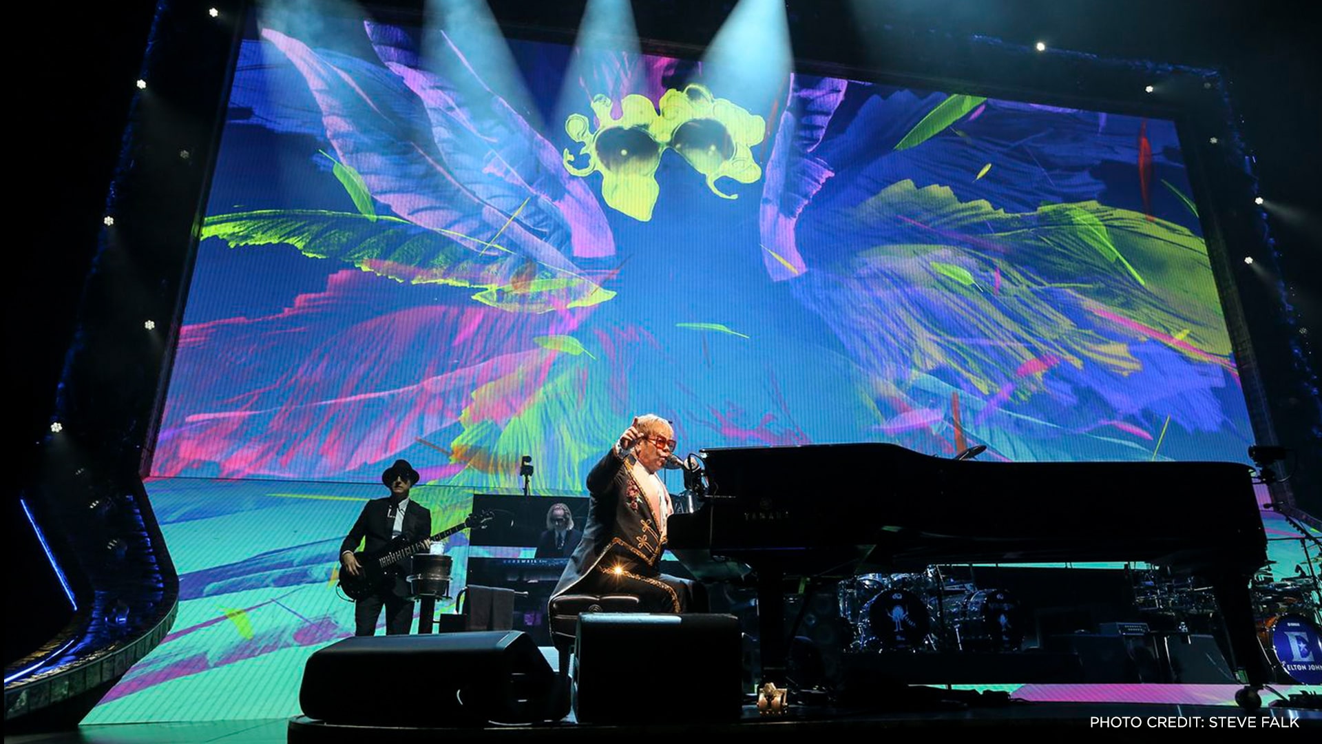 SACO joined forces with touring giant Solotech to bring to life the vision of Elton John and his trusted team behind the dynamic production, including designers Patrick Woodroffe and Ray Winkler/Stufish, Creative Directors David Furnish, Tony King, and Sam Pattinson, Production Manager George Hoadley, and Tour Director Keith Bradley. King and Pattinson led on video content, while Woodroffe handled lighting design. Stufish Entertainment Architects designed the stage, with engineering, build, and automation by TAIT.