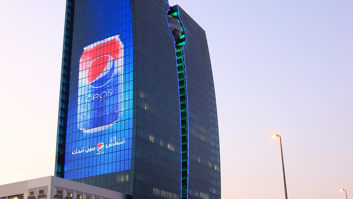 Being the largest in the Middle East, with almost 10.000sqm of custom-made video system, it also uses the DMF 2.0 technology: the latest and trendiest innovation for full integration into the Facade.