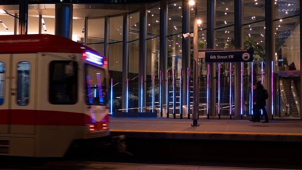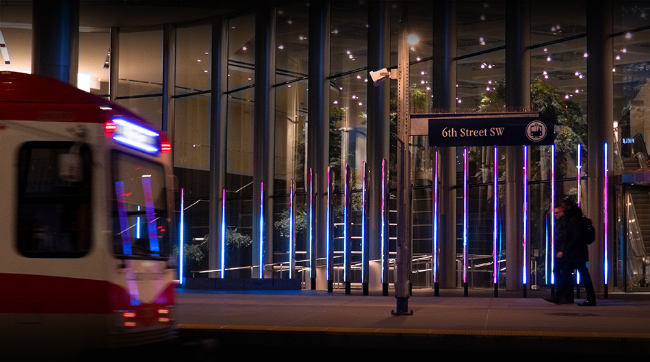 SACO was delighted to be invited by Manulife Real Estate to collaborate with artist and designer Luftwerk to illuminate Occurrence of Light, a public art commission located along the periphery of the vibrant Manulife Calgary office tower. Inspired by Canada’s Aurora Borealis, the sculptural light installation is a three-dimensional, digital artwork that blends contemporary art, science and technology.
