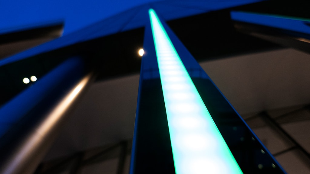 SACO illuminated Occurrence of Light using its state-of-the-art V-Stick S LED Video Light fixtures, which were embedded in custom-made, mirrored stainless steel blades. The piece consists of 76 programmable SACO V-Stick vertical blades with heights of 5ft to 13ft, which reflect phenomena mimicking the amorphous structure of the cosmic event. The changing colors and activity are identified between the artist and the staff of Natural Resources Canada.