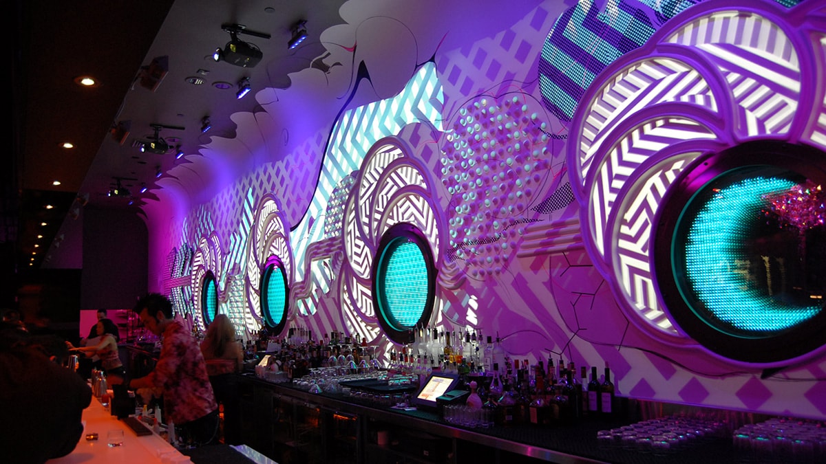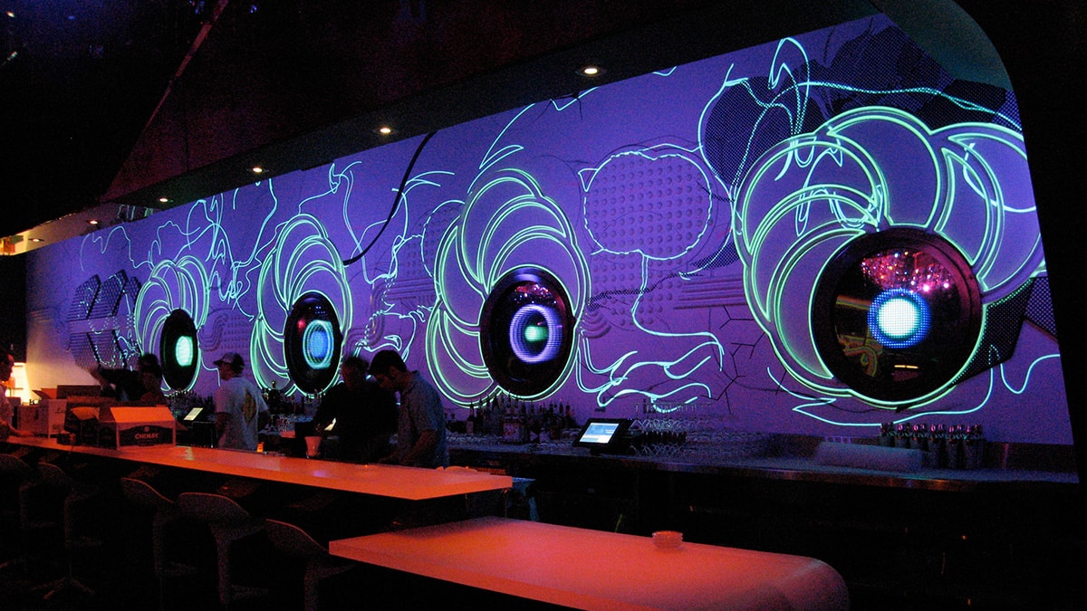 Cirque du Soleil invited SACO to collaborate in creating and realizing this visionary bar experience. Challenged with evoking The Beatles’ spirit in an original way within the context of Cirque du Soleil’s vision, SACO used digital technology integrated with sophisticated physical design to create an immersive experience.