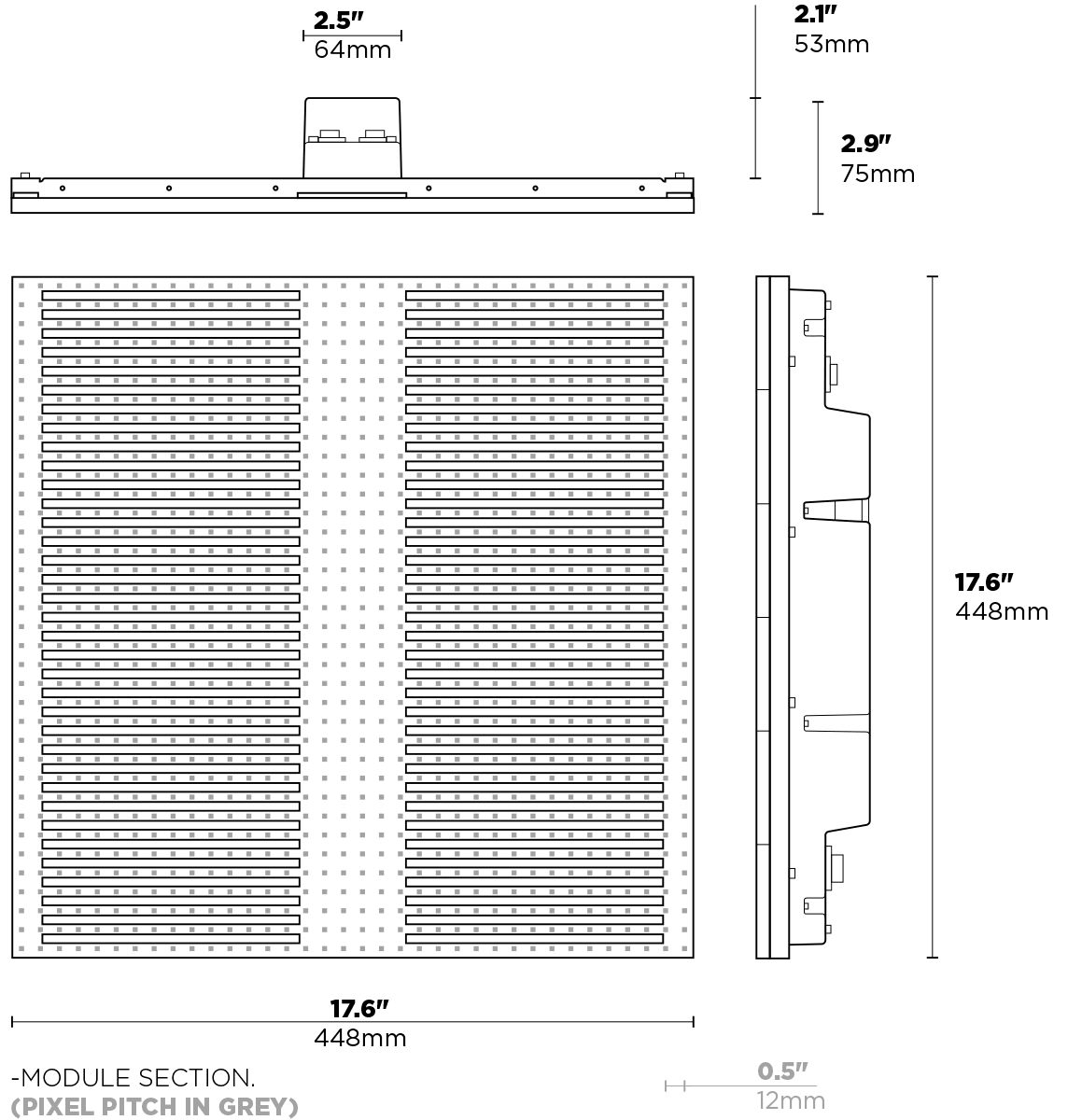 • Module dimensions: 17.6″ wide x 17.6″ high (448mm x 448mm)