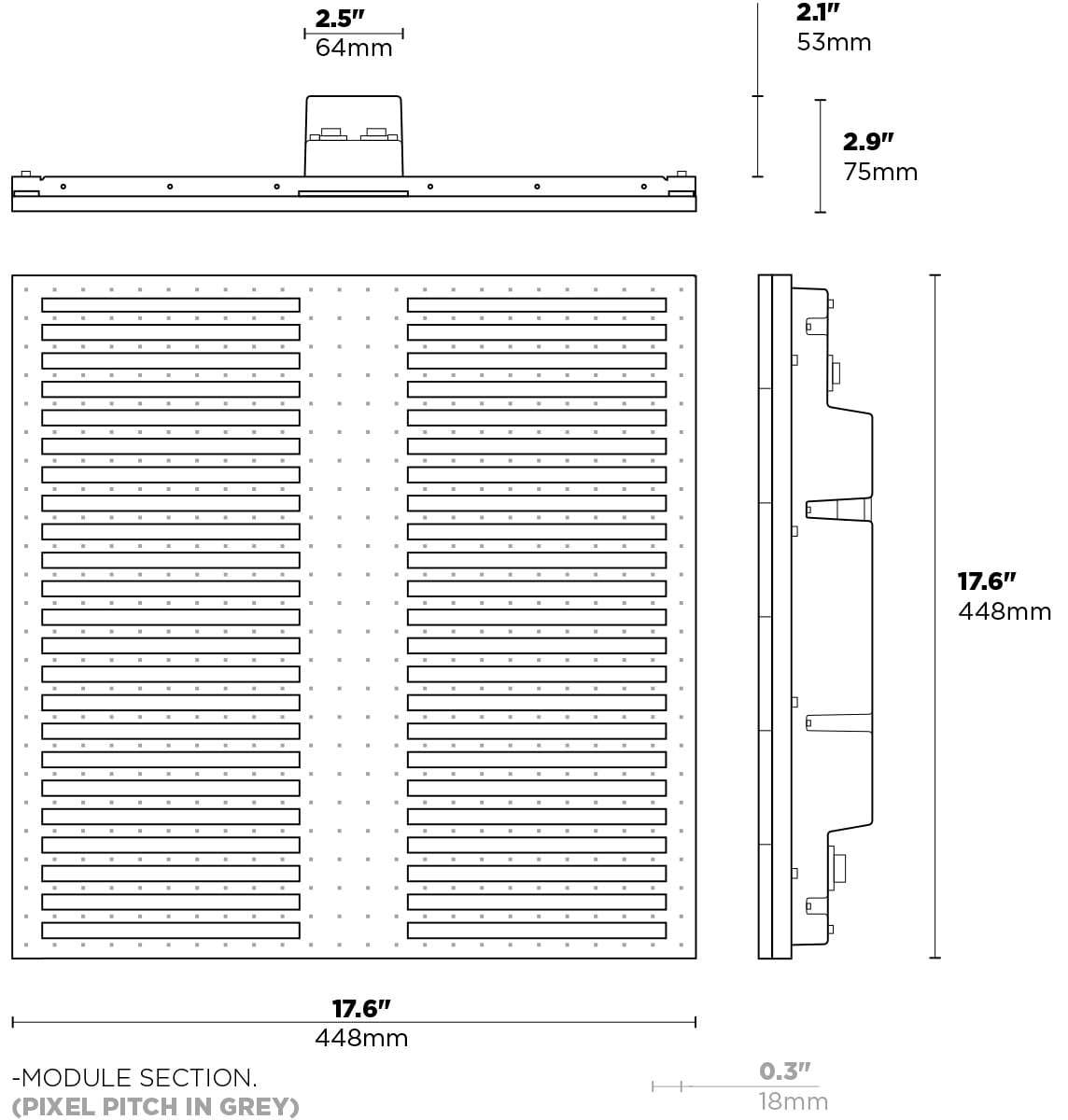 • Module dimensions: 17.6″ wide x 17.6″ high (448mm x 448mm)