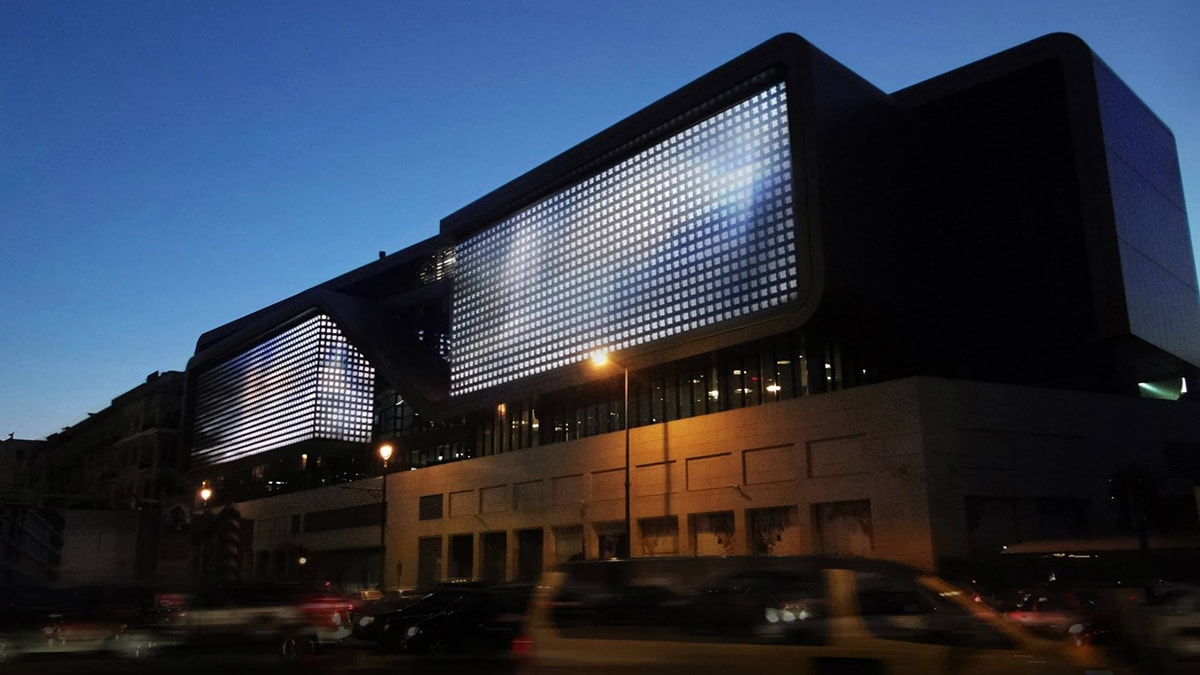 At the very heart of Beirut, Solidere is renovating the whole downtown area. Amongst this mega project’s building is planned an entertainment center in the Souk, called “Souk Entertainment Center” (SEC). Available for passer-by, shoppers and the lighting designer, CAI Light, developed a concept of media facade skin to enhance the four parts of the facade of the SEC. Becoming independent “screens”, each part of the facade will be displaying truly amazing color changing and graphic effects.
