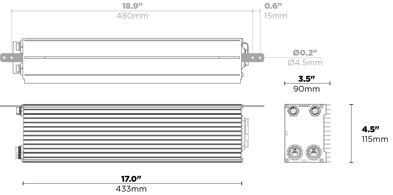 - Die-formed laser cut cold rolled steel mounting brackets (0.125″/3mm)