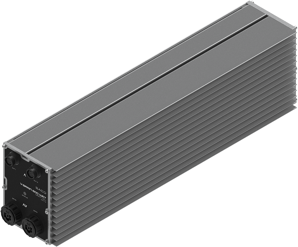 Tethered power and data allows the line of SACO fixtures to take full advantage of the latest solid state technology and efficient heat dissipation, shedding weight and bulk to leave only a slim, powerful fixture in a modular arrangement that easily integrates with any project. Applying the same concepts, the SACO Direct View V-BRAIN 600 WET is designed like the fixtures it powers; modular, stackable, slim and weatherproof.